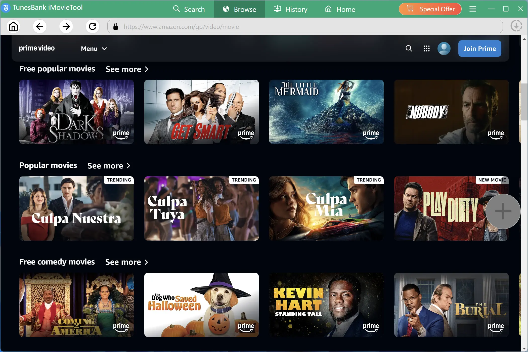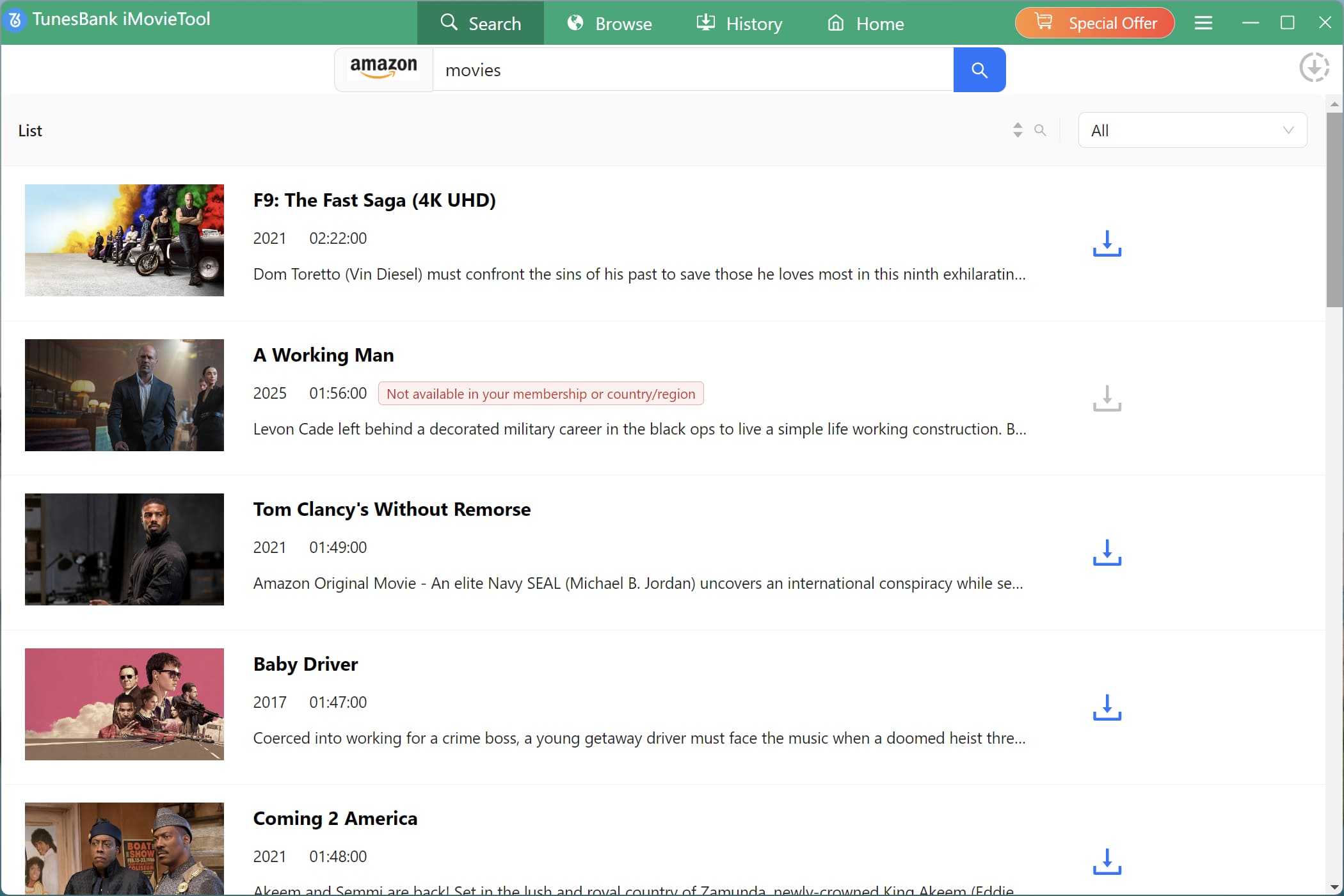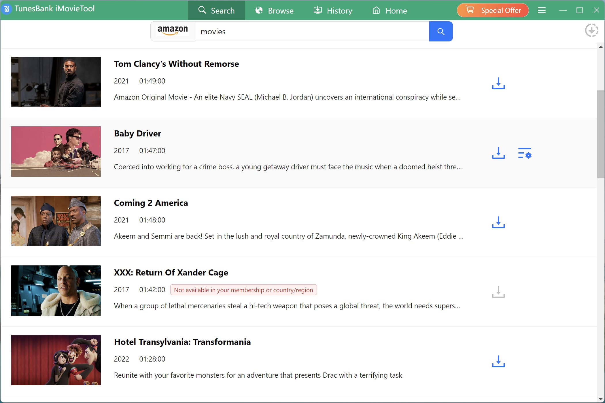 For example, type "movie" in the search box, TunesBank will display matching results from Amazon Prime Video.