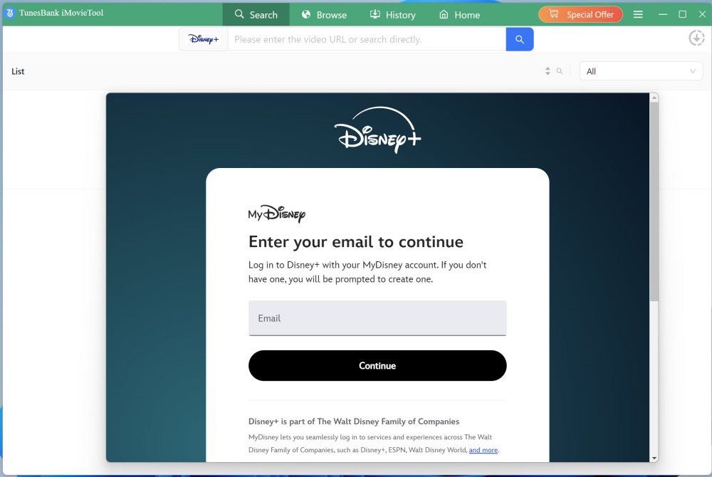 TunesBank Disney+ Downloader needs to work with your Disney+ account to access Disney+ video content.